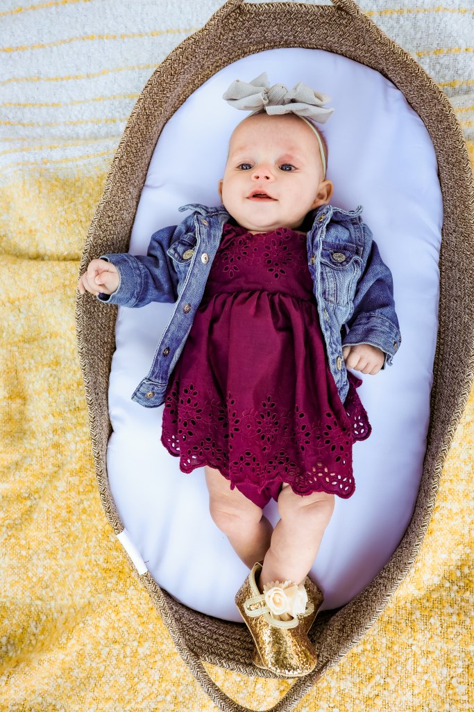 Most newborn shoots are lifestyle photo sessions in a family’s home. However, this mom really wanted to simply showcase her beautiful 4-month old. I had her come join in on an existing autumn mini shoot day. In 15 minutes, we got 100+ photos of one of Montgomery County’s newest gems.